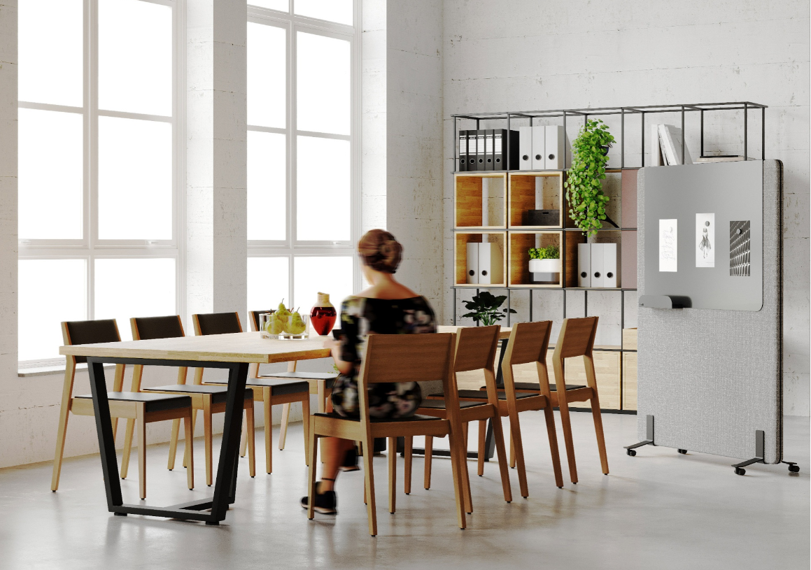 Naast de praktische functie als scheiding tussen werkstations, helpt Selva ook om achtergrondgeluid van kantoorapparatuur of collega’s te dempen. Dankzij de brede keuze in afmetingen en stofferingen past het scherm esthetisch in diverse interieurs.