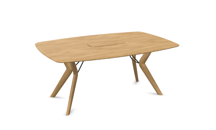 Trava is een robuuste vergadertafel in massief eikenhout, ontworpen om grote groepen samen te brengen in een warme en functionele omgeving. Het tafelblad met afgeschuinde soft touch rand biedt maximaal comfort voor de onderarmen, terwijl de geïntegreerde top access-opbergvakken alle aansluitingen binnen handbereik brengen. Zo combineert Trava een natuurlijke uitstraling met moderne functionaliteit.