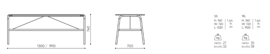 Weight (1910 mm): 35 kg net / 38 kg gross