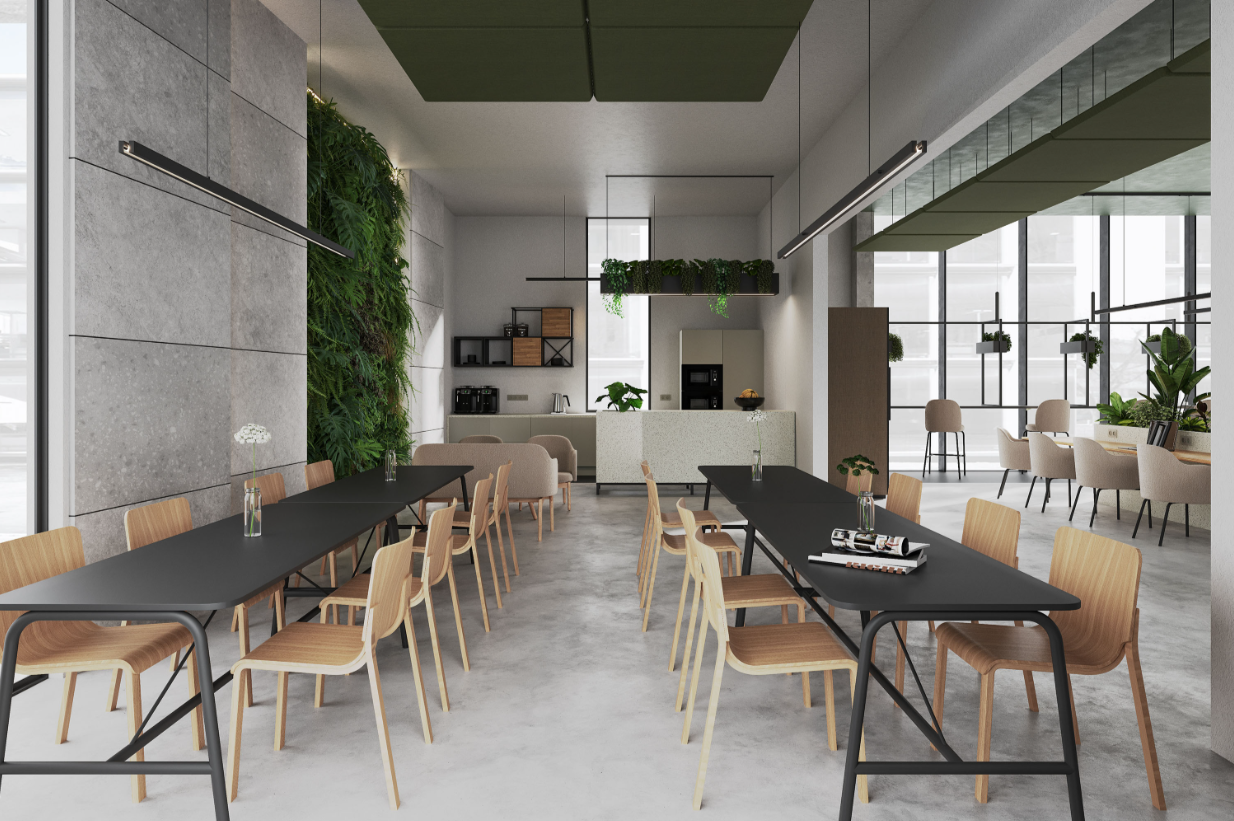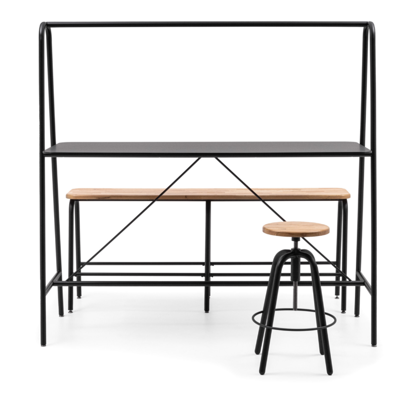 The Spin table is part of a robust loft-inspired collection that combines steel, solid wood, and high-quality finishes in a clean, timeless design. Its stable construction and minimal form make it ideal for modern offices, coworking spaces, or company kitchens.