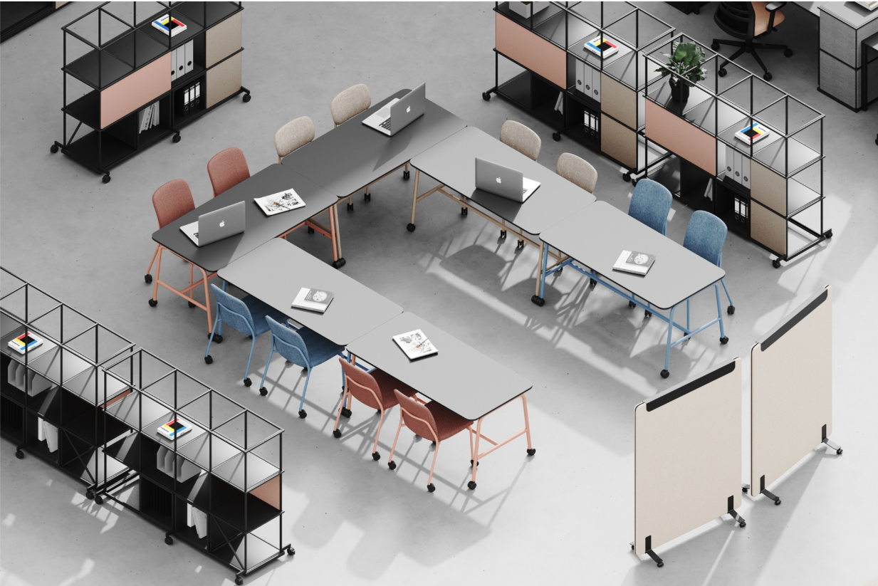 Available in various sizes with either wooden or steel legs, Spin tables function beautifully as communal workstations, dining tables, or informal meeting points. Their industrial look brings strong character to any space.