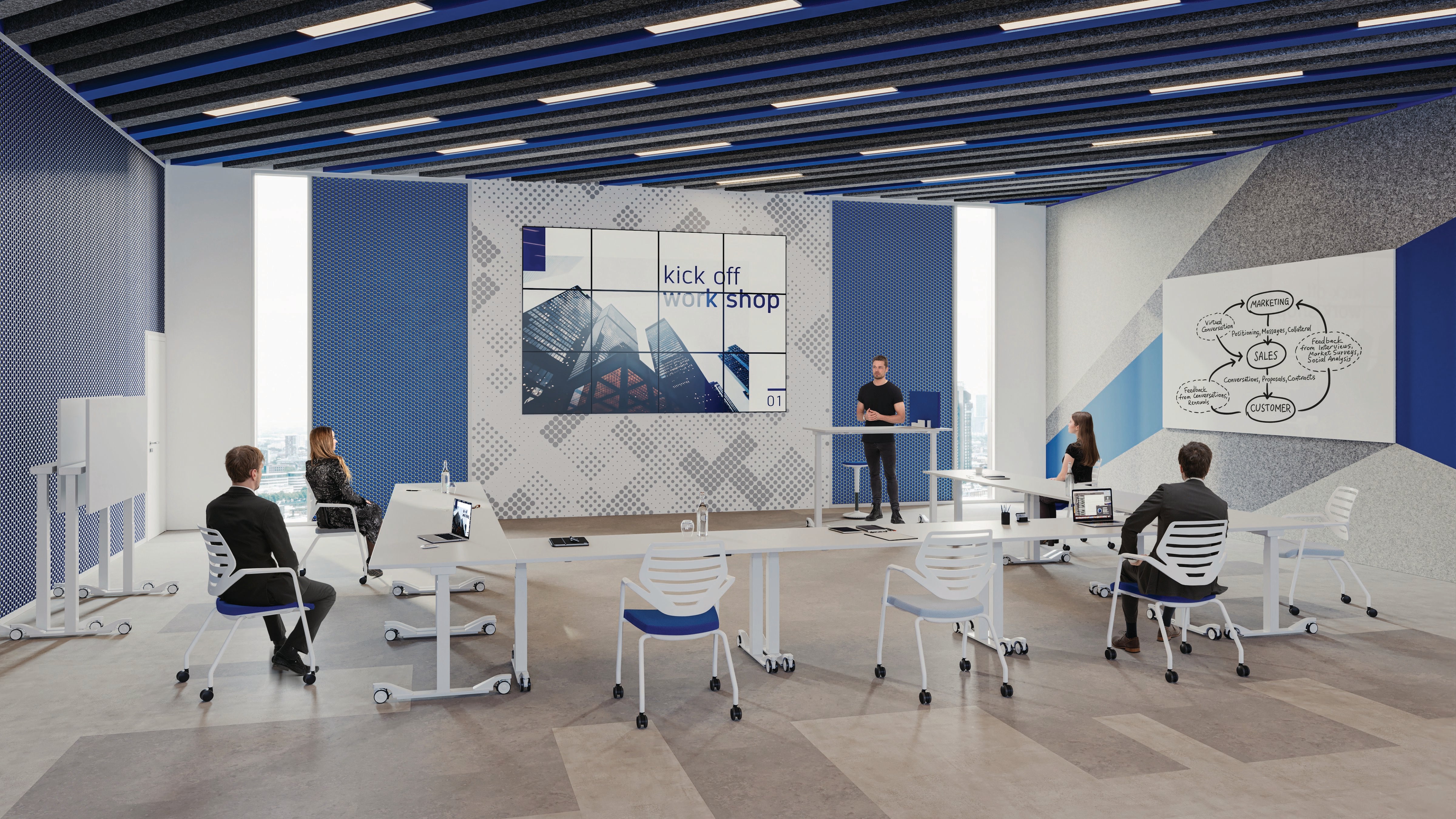 De König + Neurath TALO.YOU WPKTS is een flexibele en ruimtebesparende nesting tafel op wielen, ideaal voor dynamische vergaderomgevingen, trainingsruimtes en projectzones. Dankzij het klapmechanisme met centrale ontgrendeling kan het tafelblad eenvoudig worden opgeklapt, waardoor meerdere tafels compact opgeborgen kunnen worden.