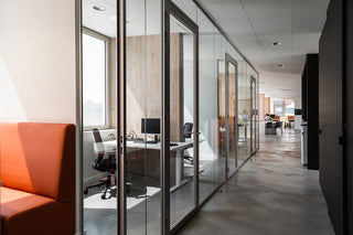 Voor wat betreft de bureaus leverde Buro International diverse witte BIVO Duo Bench bureaus. Deze zijn elektrisch in hoogte verstelbaar. Het zijn hoogkwalitatieve en stabiele zitstabureaus voorzien van akoestische scheidingswanden in oranje tinten. Als bureaustoel werd de zwarte ergonomische Every van Interstuhl gekozen. Deze comfortabele draaistoel op wieltjes en met armsteunen heeft een rugleuning met netbespanning en is voorzien van de autolifttechniek. De lendensteun en de zitdiepte zijn verstelbaar. We leverden ook de zwarte Capisco Puls 8020 bureaustoel van HÅG. Deze combineert hip design met ergonomische efficiëntie. Met zijn lichte kunststof ontwerp en extra kussentje op de zitting biedt deze stoel comfort en ondersteuning bij elke werkhouding – van zitten tot staan. Perfect dus voor deze moderne werkplek, die flexibiliteit en stijl vereist.