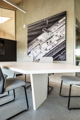 In de vergaderzalen plaatste Buro International stapelbare Buddy vergaderstoelen van Interstuhl. Deze comfortabele vergaderstoelen op zwarte sledevoet hebben een aantrekkelijk design en een fijne ventilerende netweave rug met grijze stoffering. Buro International leverde ook een lange zwarte rechthoekige Fenix vergadertafel.
