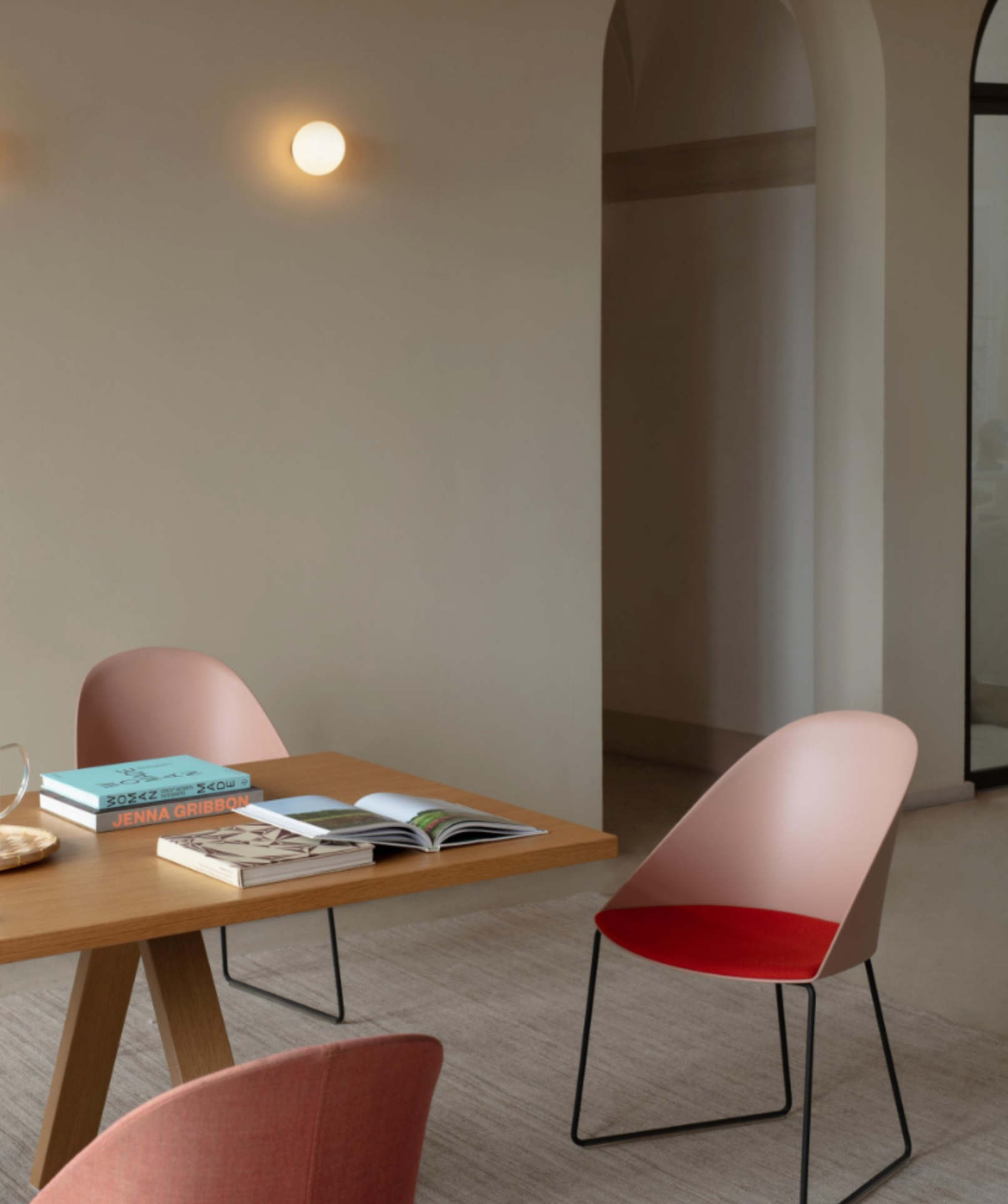 De delicate silhouet van Cila, ontworpen voor zowel residentiële als contractomgevingen, maakt de collectie veelzijdig inzetbaar: van hospitality tot de intimiteit van thuis, van vergaderruimtes tot home offices.