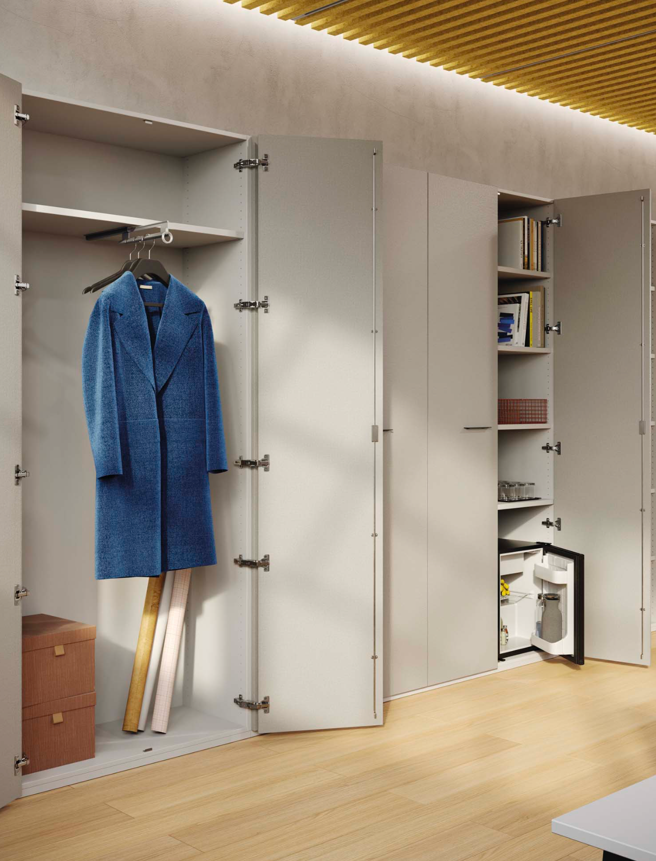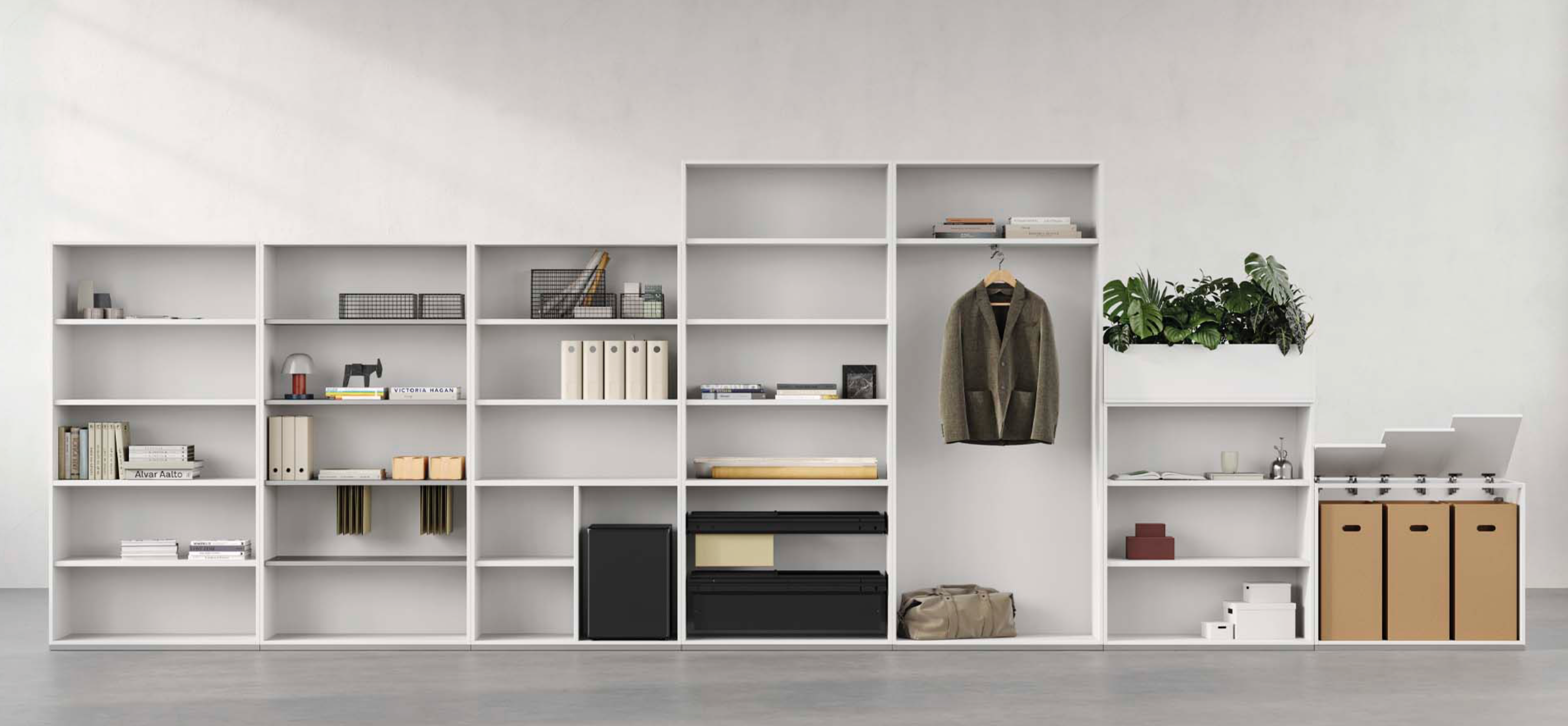 De Passepartout kasten zijn volledig configureerbaar en aanpasbaar aan de gewenste stijl, functie en ruimte – van compacte lage kasten tot hoge archiefsystemen.