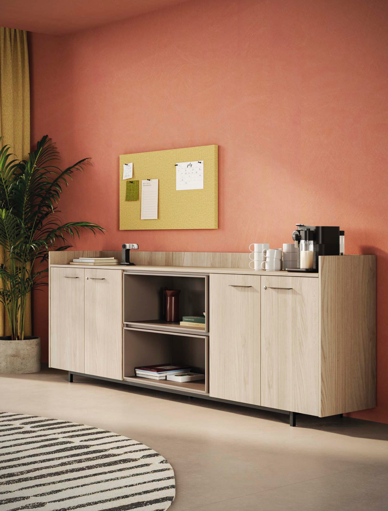 Passepartout combineert veelzijdigheid en functionaliteit en biedt een complete oplossing voor opslag en organisatie in moderne kantoorruimtes. Dankzij de ruime keuze in afmetingen en afwerkingen passen de kasten naadloos in iedere omgeving – van individuele werkplekken tot directiekantoren en gedeelde ruimtes.