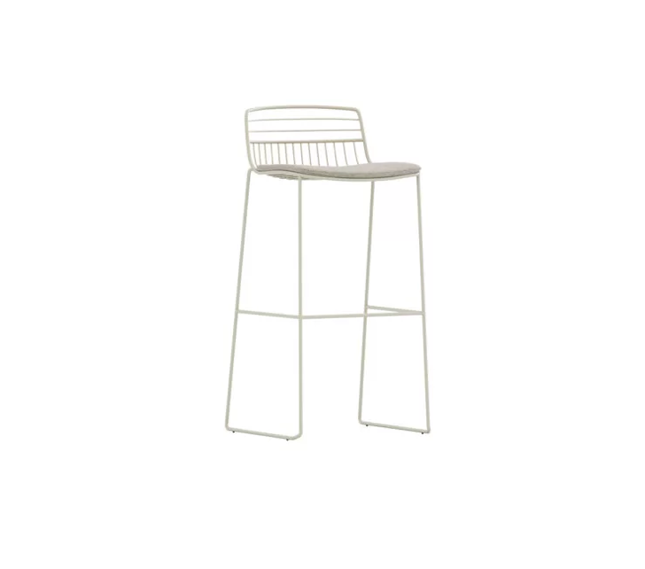 Yo Metal Stool combineert een luchtig, grafisch lijnenspel met robuuste duurzaamheid. De slanke stalen draadconstructie geeft een lichte en transparante uitstraling, terwijl de kataphoresebehandeling optimale bescherming biedt tegen weersinvloeden. Perfect voor terrassen, horeca of buitenruimtes bij bedrijven – en met optionele kussens ook nog eens extra comfortabel.
