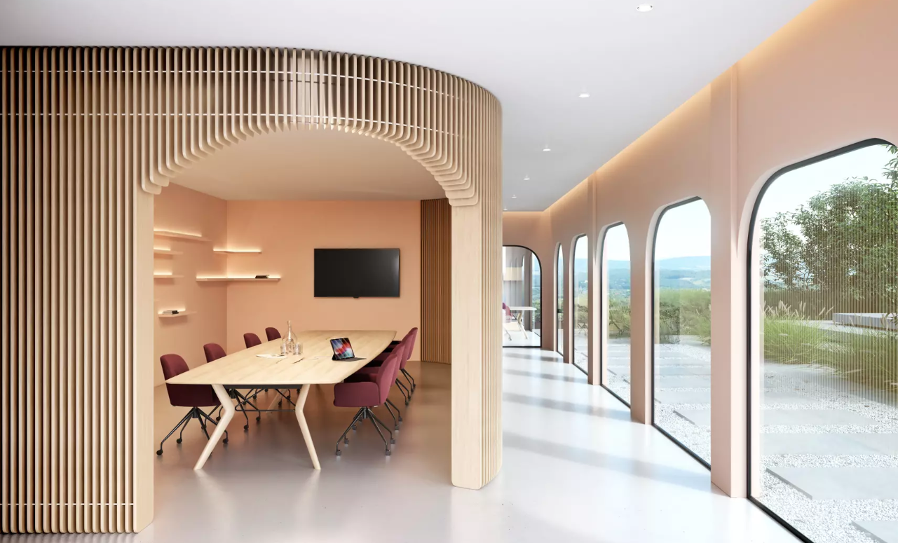 Trava is volledig configureerbaar: kies de afmetingen, houtafwerking en metaalkleur voor een vergadertafel die zowel esthetisch als functioneel perfect aansluit bij uw werkruimte.