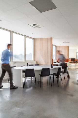 In de vergaderzalen plaatste Buro International stapelbare Buddy vergaderstoelen van Interstuhl. Deze comfortabele vergaderstoelen op zwarte sledevoet hebben een aantrekkelijk design en een fijne ventilerende netweave rug met grijze stoffering. Buro International leverde ook een lange zwarte rechthoekige Fenix vergadertafel.